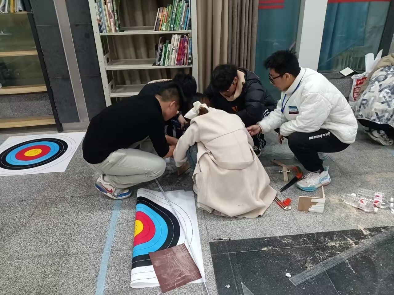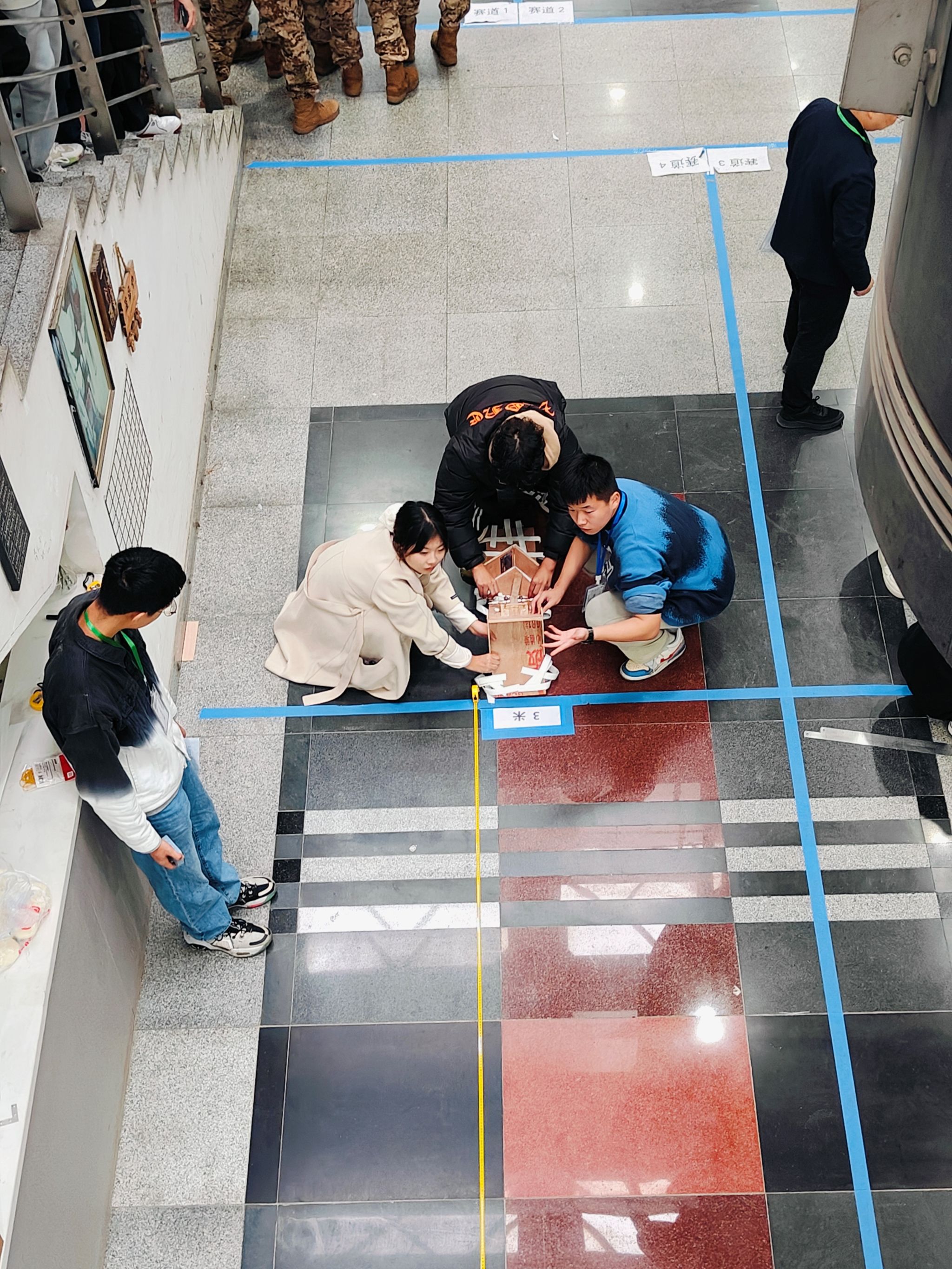 决赛主题为触发式定点投射,通过最终打靶的成绩进行成绩排名。在为期三小时的制作装置与测试阶段,我校三支队伍配合默契,分工明确,均在规定时间内完成装置制作,并充分测试。