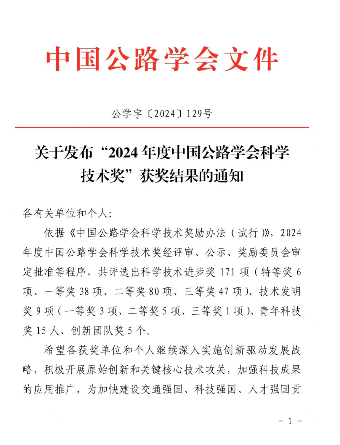 中国公路学会创新团队奖旨在奖励进行长期科技活动并取得重大创新性成果的科技创新群体,促进团队建立良好的产学研合作关系,形成推动行业科技发展的强劲动力。