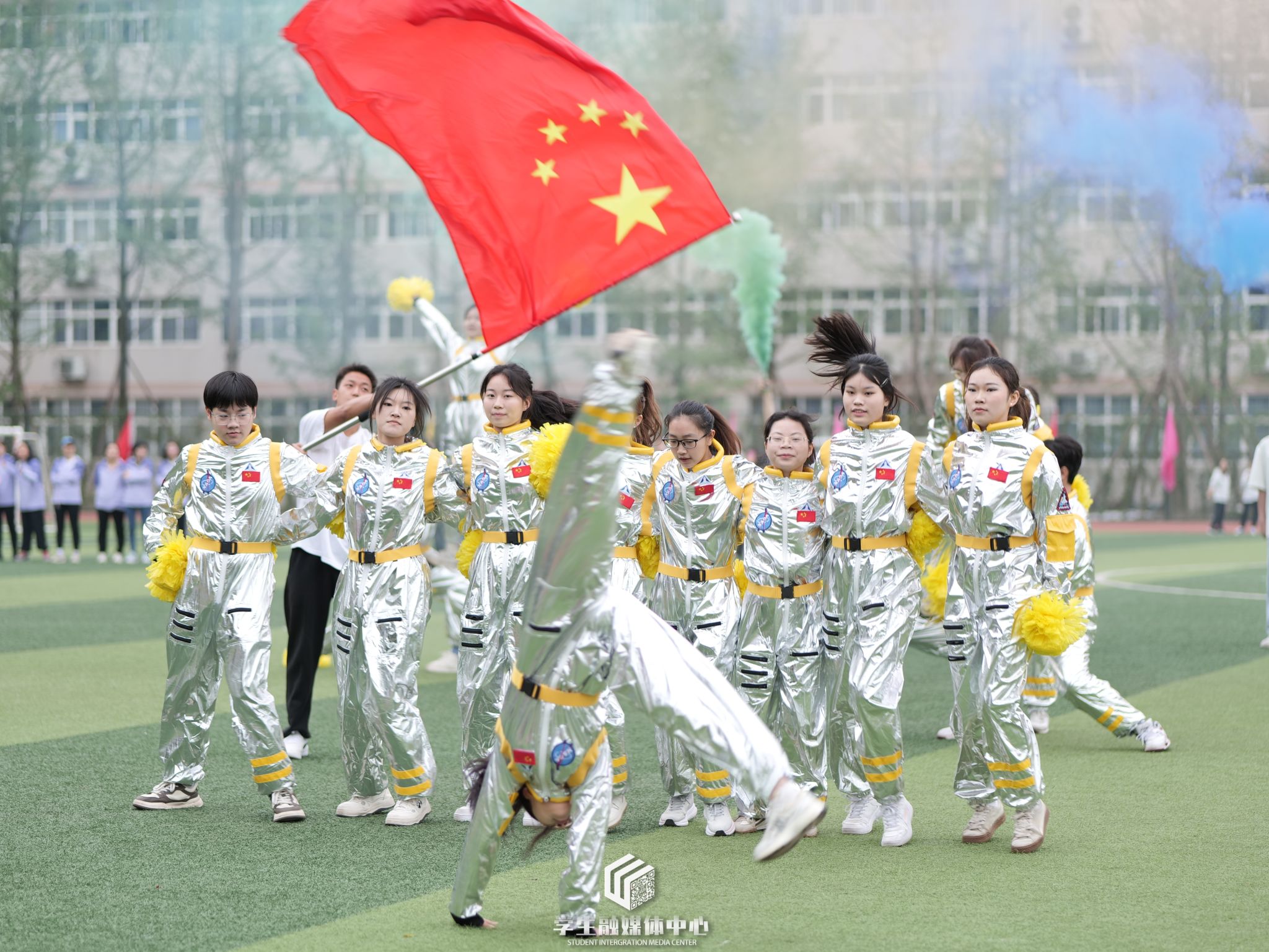在健美操比赛中,我院学子紧贴时事以学习航天精神为指引,通过别出心裁的表演成为全场焦点。其中,我班崔永欣等6名同学身着亮眼服装,在节奏律动中尽显青春活力。古余同学身着太空人服装于队列前挥舞国旗,红旗飘扬,彰显着青年拳拳科技强国之心。