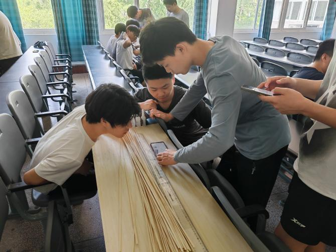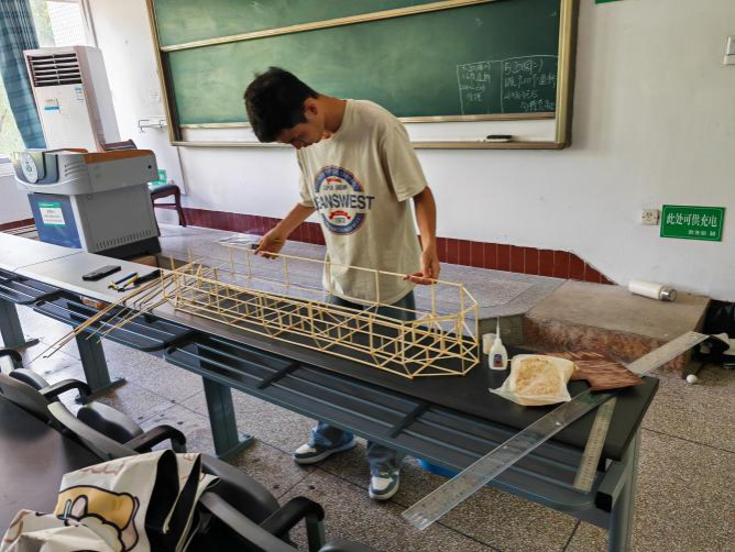 活动初始,班长借助多媒体演示系统,深入浅出地讲解了桥梁、塔楼、船舶等工程结构的基本原理,着重剖析了木构模型的力学特性和制作规范。“拱桥的矢跨比应精准控制在1:5到1:10之间”“胶接点务必保证30秒以上的固化时间”等专业要点,为后续的实践操作筑牢了坚实基础。同学们全神贯注,笔尖在纸上沙沙作响,认真记录着每一个关键信息;更有同学踊跃举手,积极提问,现场的学习氛围热烈而浓厚,仿佛连空气都充满了求知的渴望。