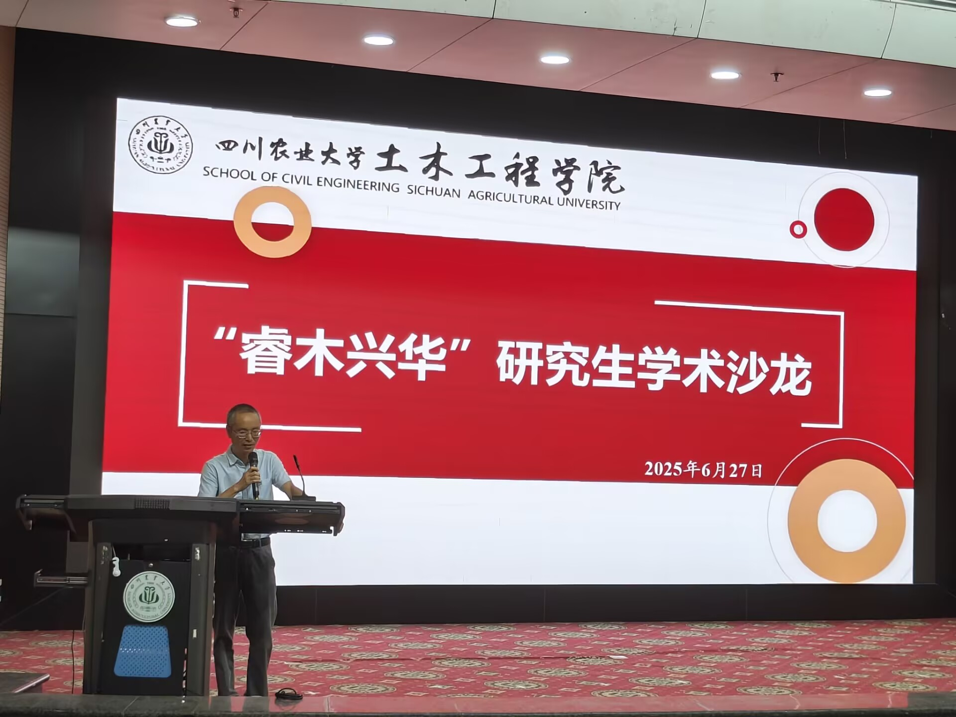 为弘扬严谨治学精神,激发研究生科研创新潜能,助力研究生提升科研能力,营造浓厚学术氛围,推动学院学术交流与发展,我院于2025年6月27日上午10点在都江堰校区图书馆报告厅举办“睿木兴华”研究生学术沙龙。本次会议邀请2023级优秀研究生代表甘芮、2024级优秀研究生代表徐大凯分享科研经历和学术心得。学院院长邹祖银、岩土与地下工程系副主任唐俊峰出席本次会议,党委办公室老师邓克莉主持会议。