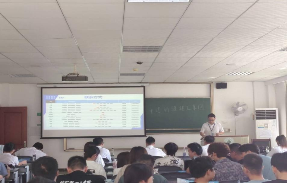 活动伊始,集团HR团队播放了企业介绍视频,通过丰富的画面内容直观呈现公司业务布局与发展成果。视频结束后,主讲HR聚焦企业实力核心,清晰传递关键信息:母公司中国建设集团稳居中国企业500强第四位,硬核排名让在场学生对企业平台实力建立清晰认知。接着HR随后依次介绍集团发展理念、定制化培养方案,同时清晰讲述薪资福利构成,具体内容让学生对职业发展前景更添期待。宣讲收尾阶段,八位HR依次结合各自负责的地区补充相关岗位细节与业务特点,针对性解读引发在场学生积极回应,现场反响热烈。