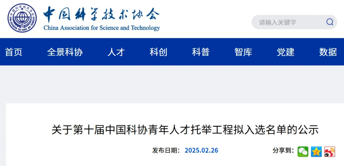 中国科协青年人才托举工程是中国科协于2015年10月首次立项的国家级青年人才计划,主要是大力扶持有较大创新能力和发展潜力的32岁以下的青年科技人才,助力他们成为高层次领军人才和高水平创新团队的后备军,被誉为青年科技人才成长的“第一块踏板”、青年科技人才科研创造关键时期的“雪中送炭”工程。本届项目围绕“四个面向”,以能力、素质、潜质为标准,重点支持从事基础研究和原始创新的青年科技工作者,从事集成电路、工业母机、基础软件、先进材料、科研仪器、核心种源等关键核心技术攻关的青年科技工作者,从事新一代信息技术、人工智能、量子科技、生物科技、新能源、新材料等新兴产业、未来产业领域科技创新的青年科技工作者。